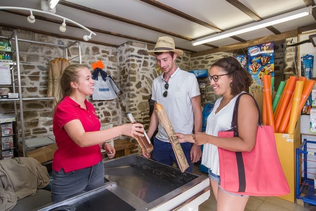 Parmi les commerces du camping lez eaux : le petit magasin ! Tous les matins à partir de 8h, pain et viennoiseries fraîches vous attendent. L’épicerie propose aussi de l’alimentation générale, du vrac, des produits locaux (cidre, Calvados, Camembert, Yaourts…) des fruits et légumes frais, des produits d’hygiène, des souvenirs et cartes postales ainsi que du tabac.