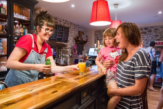 Schließlich wurde in 2015 die alte Holzterrasse der Bar und des Bereichs der zum Mitnehmen zubereiteten Gerichte durch eine herrliche Terrasse aus Pflastersteinen ersetzt.