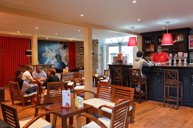 De pub is ingericht in de oude graanschuur van Château de Lez-Eaux.